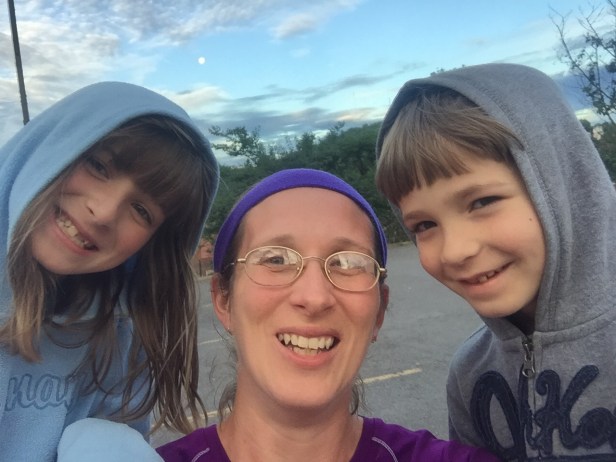 I’m running, but my legs are very heavy. The kids humor me by skipping and running circles around my slow figure. They even walk (so embarrassing).