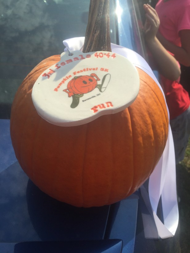 Everyone who raced this weekend earned a pumpkin and some sort of award. I got third in my age group and broke the 30 minute barrier.
