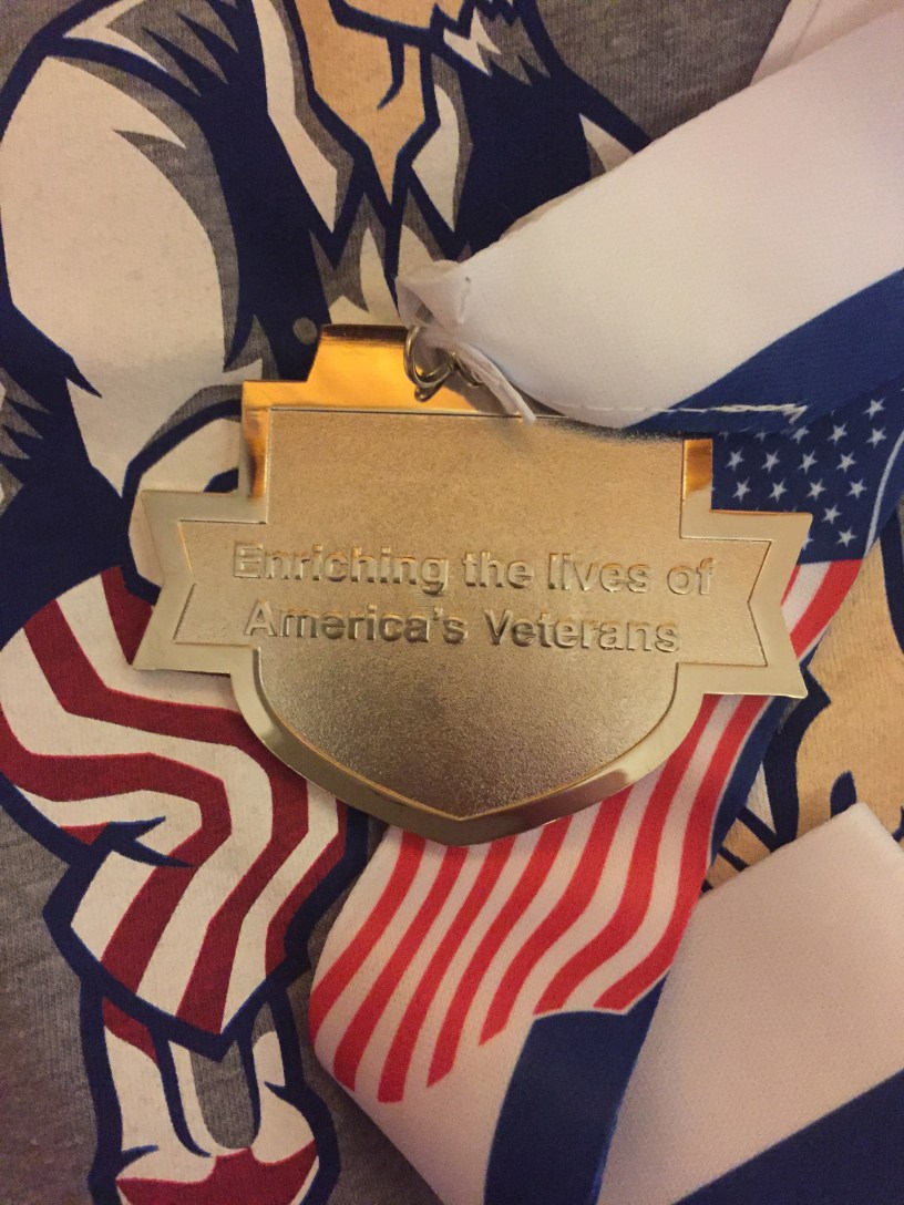 Participation bling: A shirt and medal. After you submit your race time and/or videos and photos to Team Red, White and Blue, you are eligible for age group awards or prizes for best photo or best video. These prizes will probably vary every year, but they're worth it.