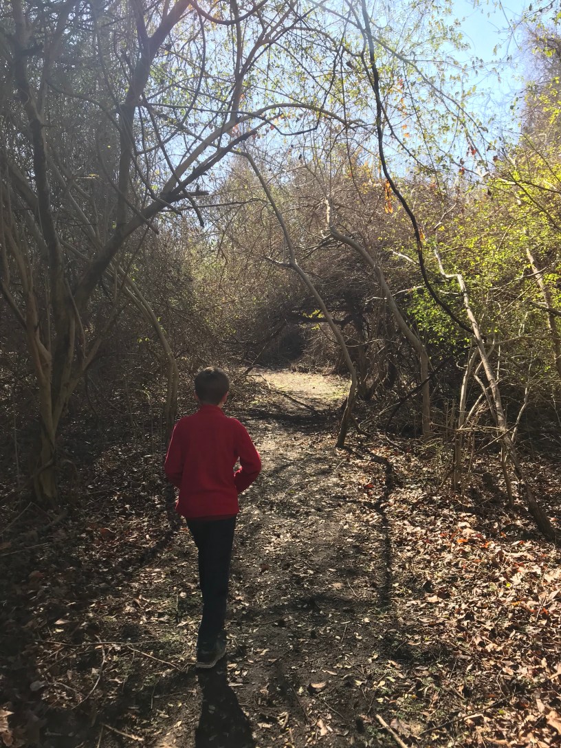 Walking with Mountain Kid 1 at Great Dismal Swamp State Park.