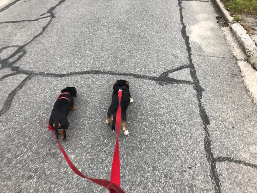 Up until a year ago, I made various attempts to run with Blue, our beagle-dachshund mix rescue dog. I gave up, because the escape artist destroyed yet another harness and isn’t really responding to training. I haven’t been able to find another harness that fits him.