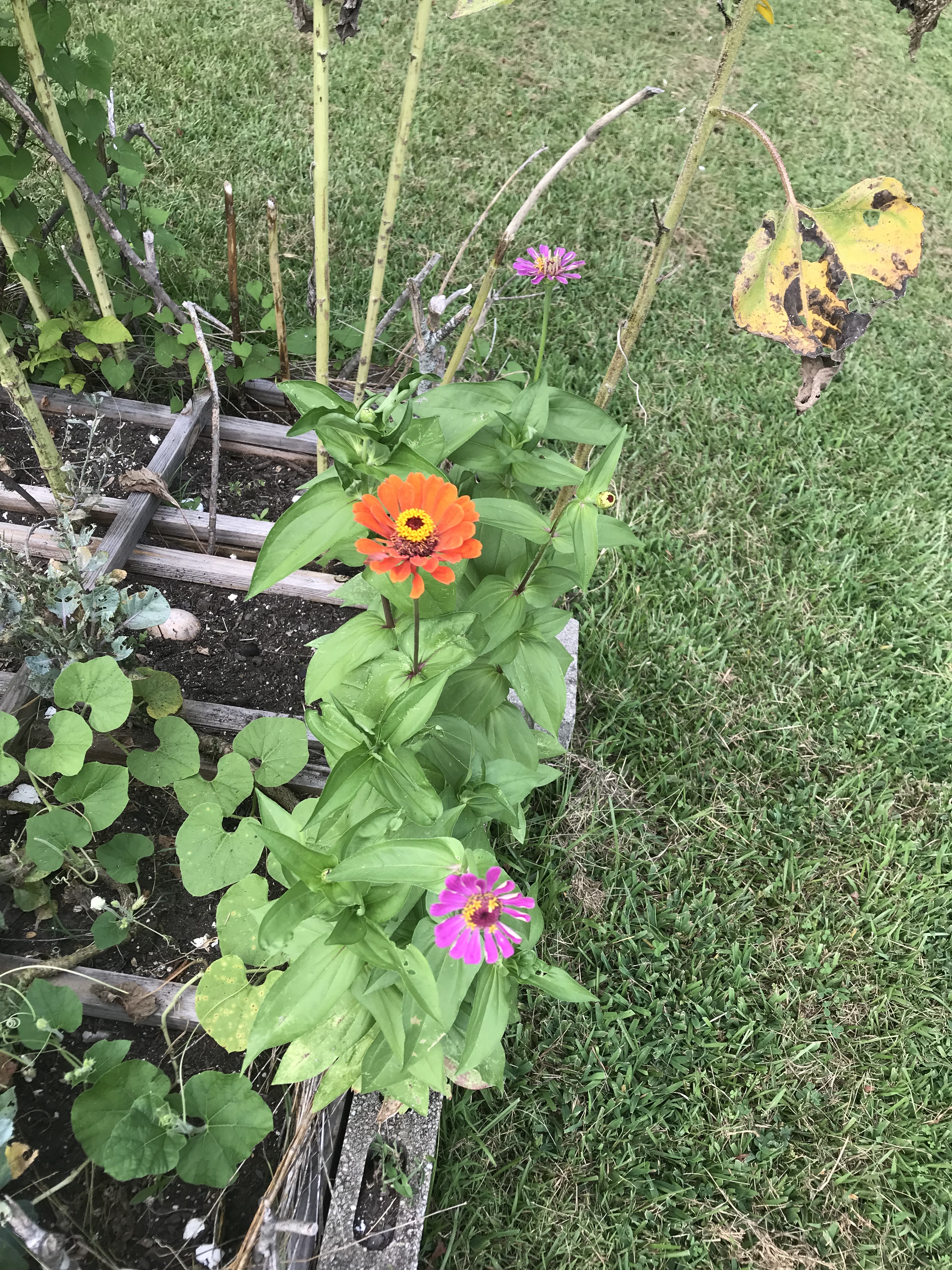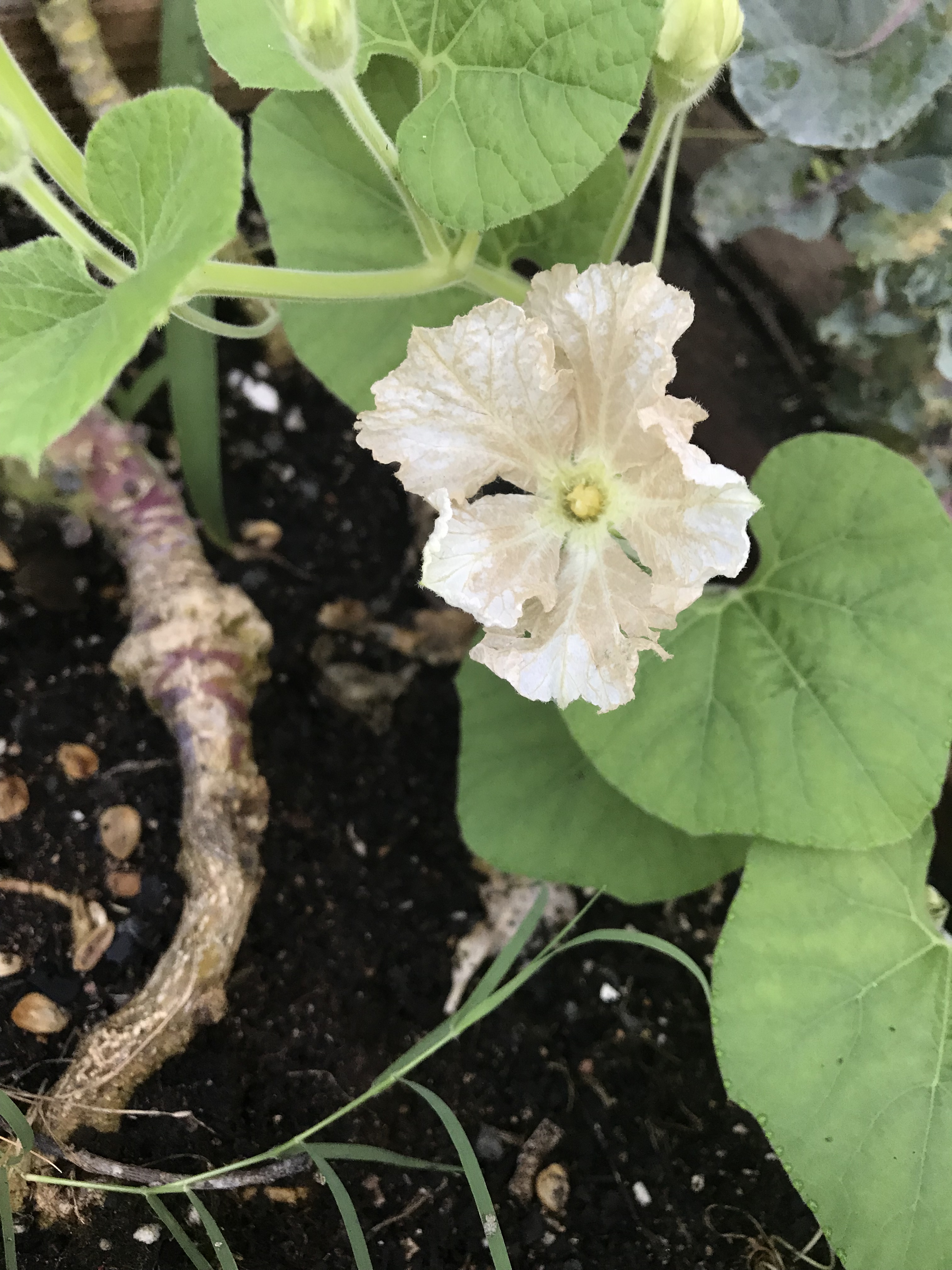 My garden is full of green — lots of vines and tall stocks. No vegetables like I planned.