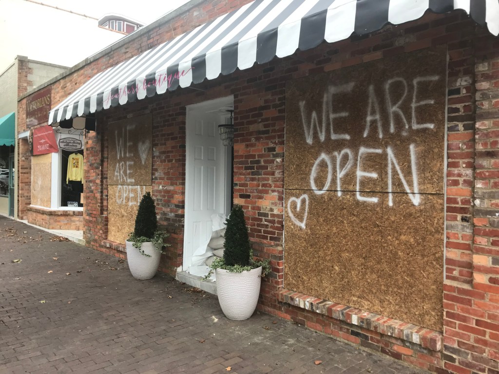 Boarded up store.