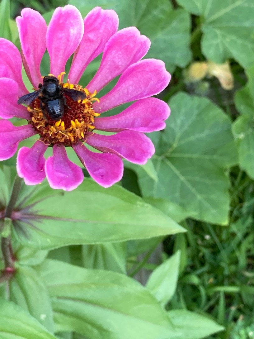 We’re now starting to lose the pumpkins. It’s either because of the beetles or because of our uneven watering habit. It doesn’t help that it rains for a week, then gets super hot for several days. Then rains again. It’s hard to predict how much water we should really add to the soil.