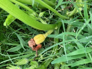 The fact the plant also is in the floodplain in our yard isn’t helping. So we’ll keep our fingers crossed. Who knows, maybe one of the other pumpkin plants will start producing vegetables.