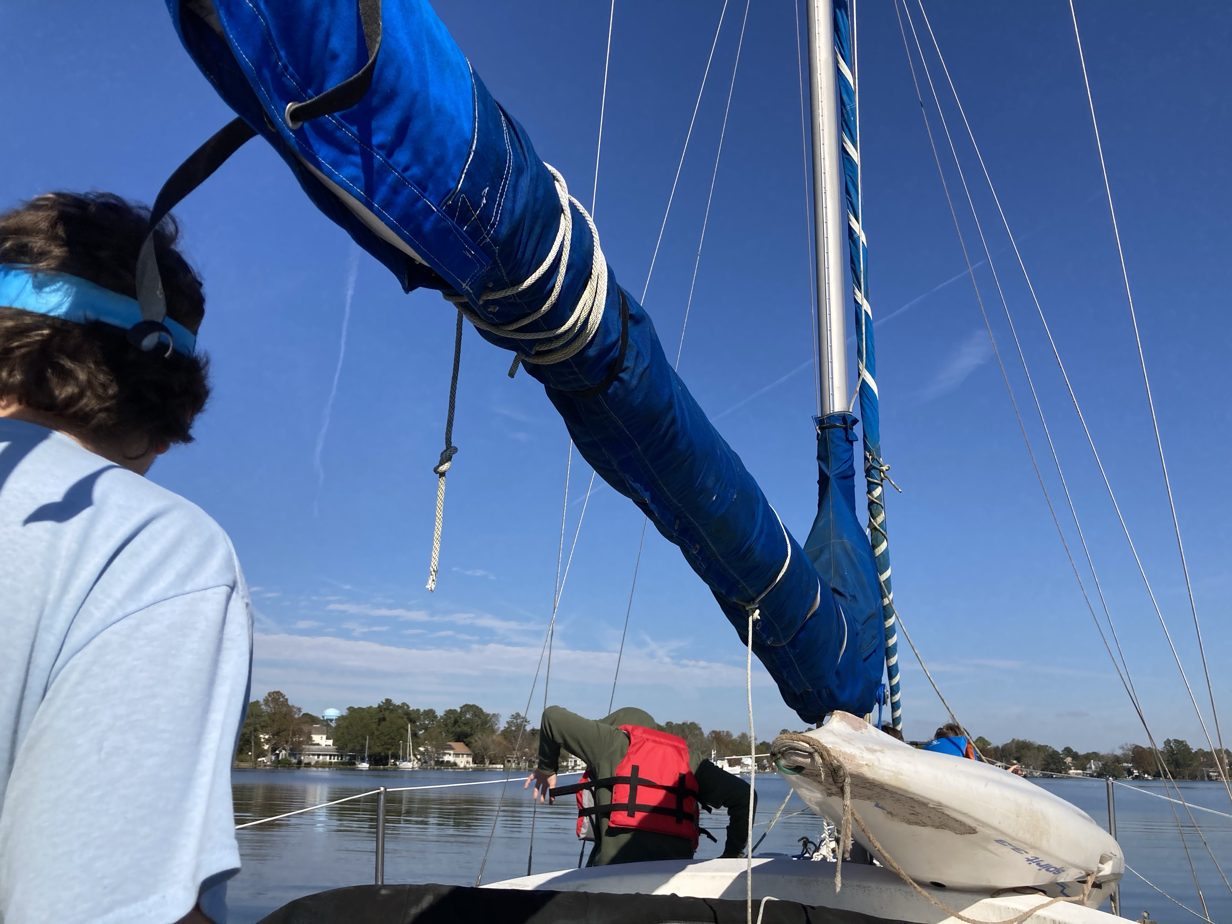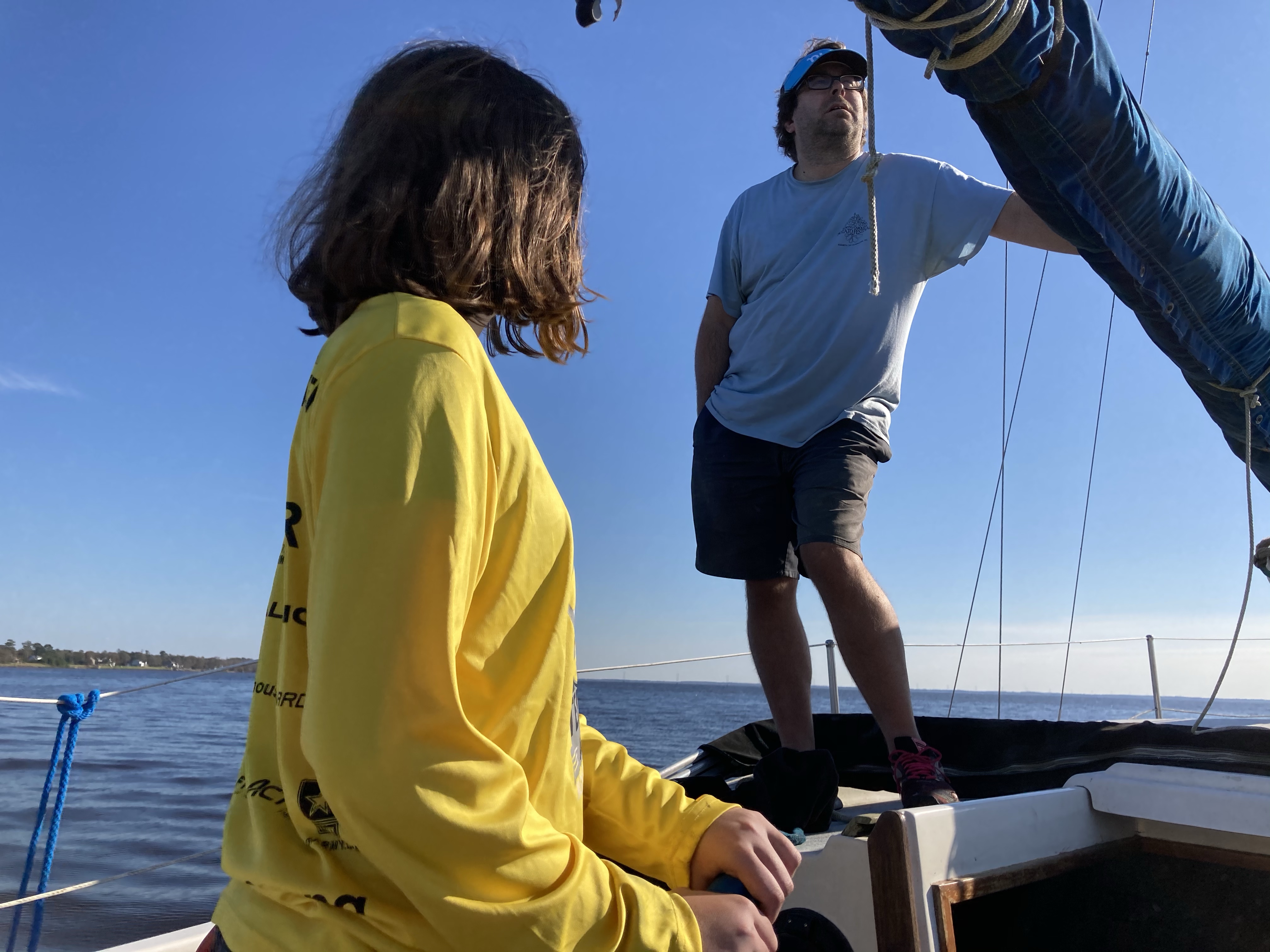 As you can see in our photo gallery, each person held the rudder a different way. One held it beside him. His older brother steered with it was behind him, like he does when piloting the smaller, one-person Sunfish sail boats. My daughter and I prefer the two-handed approach, though I’m a bit more of a white-knuckle sailor.