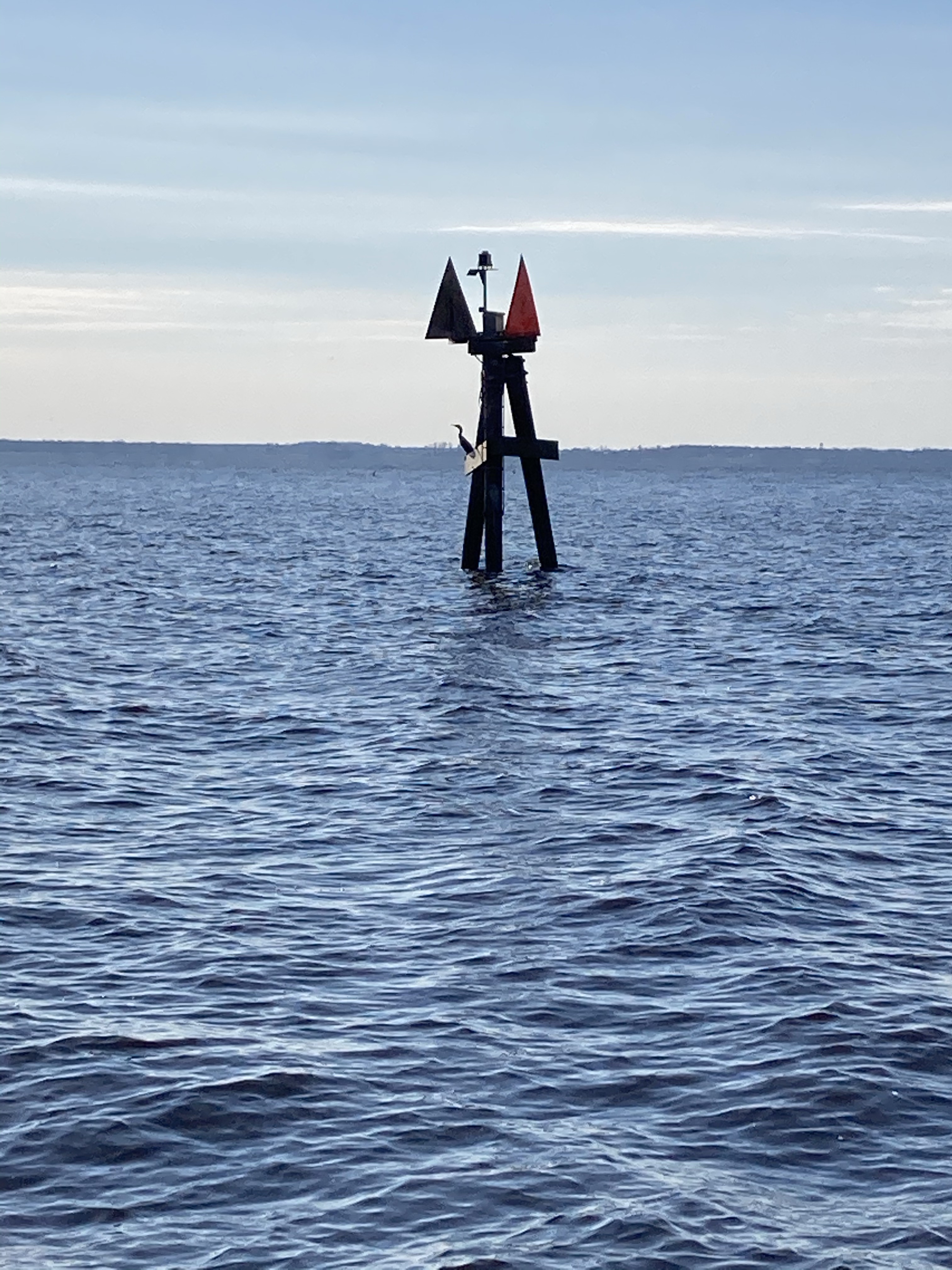 Getting out of our dock area also makes my nervous. Under the waterline, we have about 5 more feet of boat under us. If we happen to stray too far off the channel markers, we could get stuck or hit something. Again, the prospect of having to swim to shore or have our boat stuck in the water isn’t appealing to me.