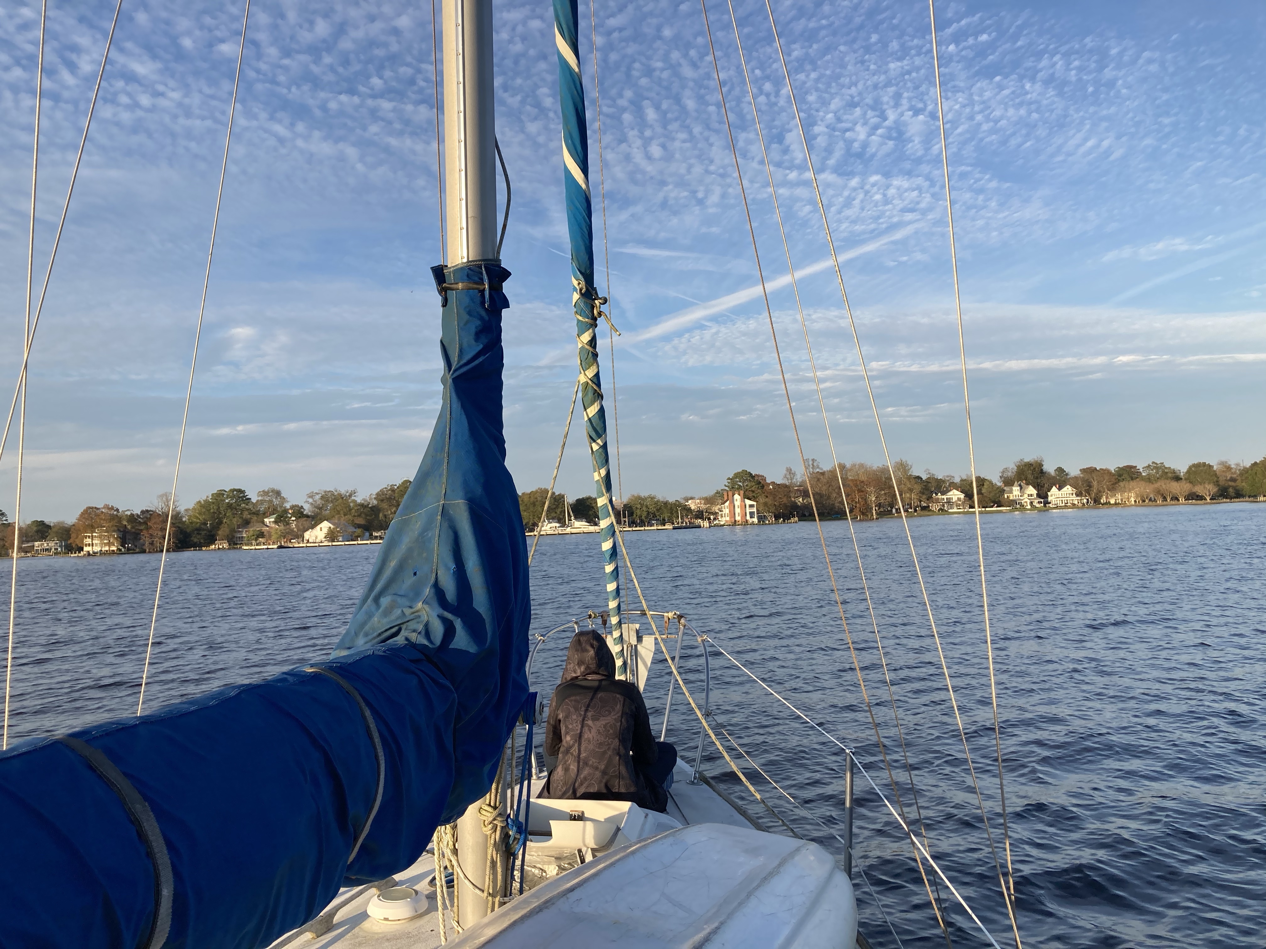 This day, we were able to loosen all the lines properly and motor out of the dock. I navigated using the Navatronics Boating app (you can learn about it by clicking here). It’s a paid app for your smartphone which offers water depth, marks buoys and known underwater debris, and a way to set a course on your map.