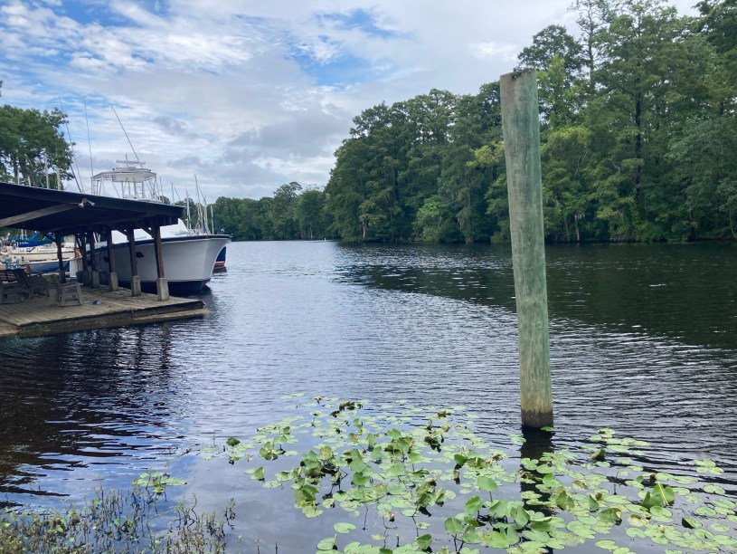 Today, I sit on a dock, writing and occasionally looking up to figure out what the bubble in the water are coming from. Please don’t be a snake.